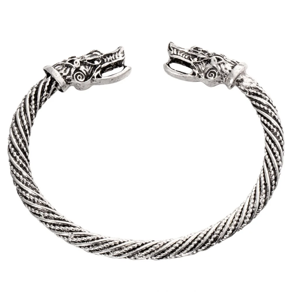Mejor precio Pulsera Vintage de cabeza de dragón, brazalete abierto con boca, estilo nórdico, Vikingo, diseño trenzado antiguo tallado, joyería NyoORd59a