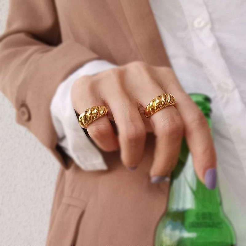 Name: Anillos irregulares de croissant para mujer, Anillos geométricos circulares gruesas con texturas minimalistas, joyería 2021