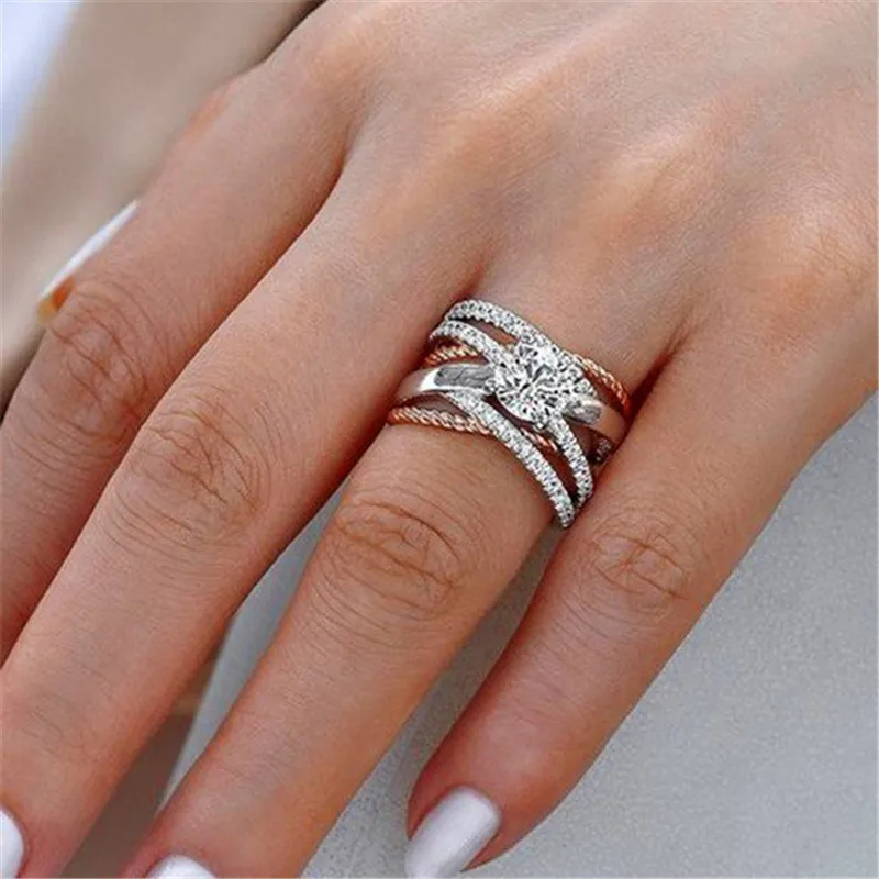 Joyería para compromiso y bodasMejor Compra Anillo de compromiso redondo de cristal grande para mujer, sortija de compromiso femenina, Color plateado, oro rosa, anillo de piedra de circón, anillos de boda Vintage para mujer QLX19DX5A