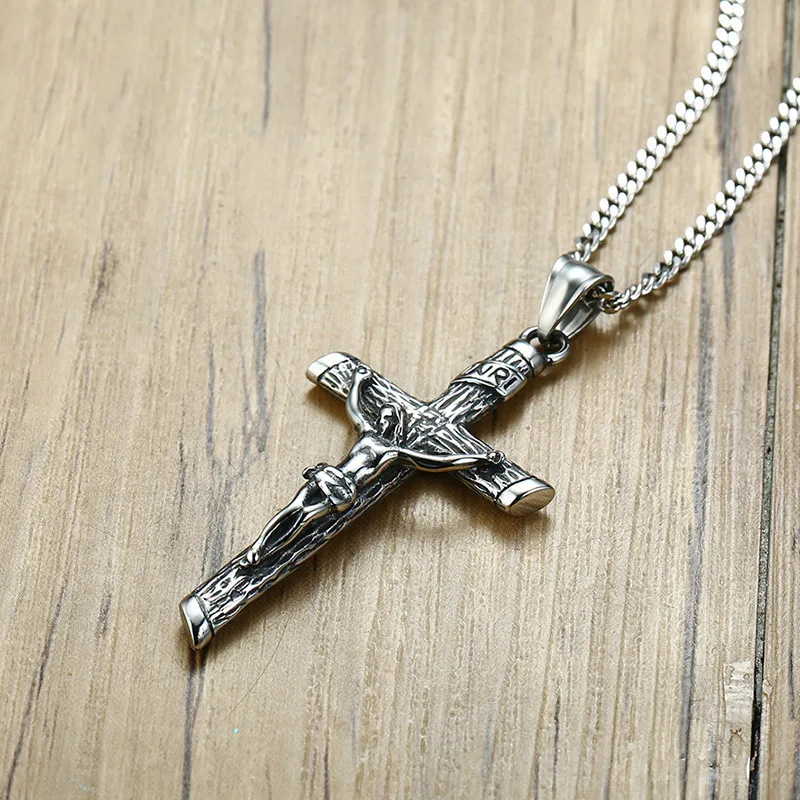 Correcto artículo y envío breve. vendedor recomendado para Crucifijo de plata antigua Cruz encantos COLLAR COLGANTE Acero inoxidable Punk joyería para hombres hombre Jesús Rosario bautizo regalo