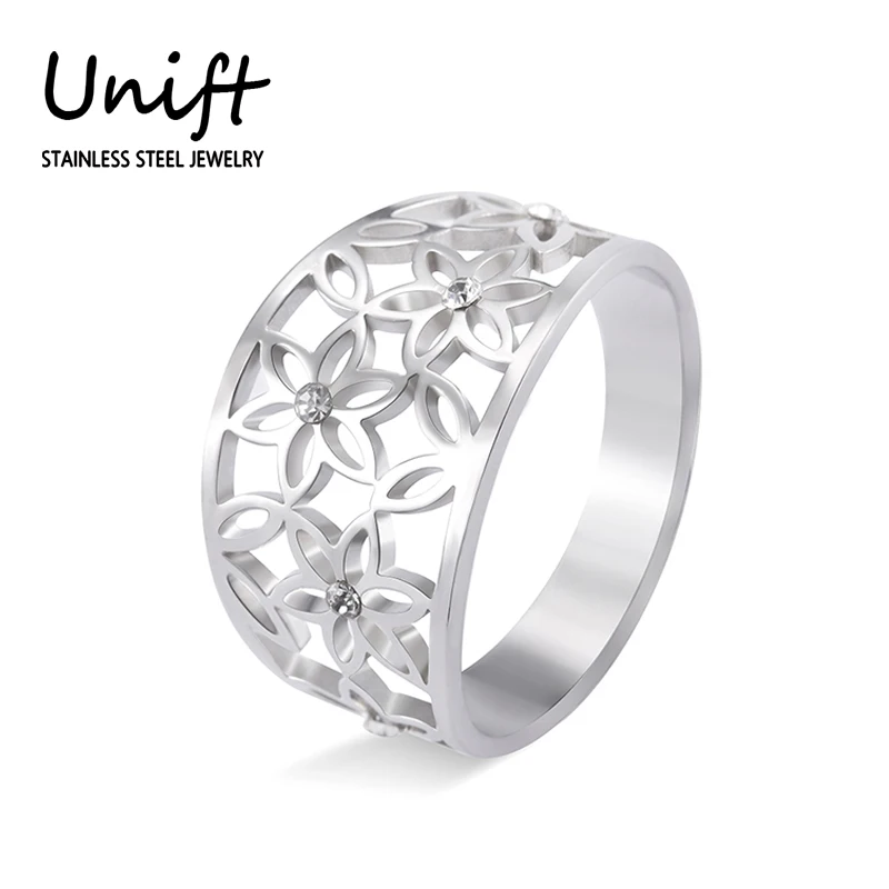 Unift-Anillo de lujo con embutido cúbico de circón, joyería de banda de acero inoxidable, anillo étnico con flor hueca de la vida, regalos de boda para mujer llegó después de 16 días, se parece a las piezas originales, gracias